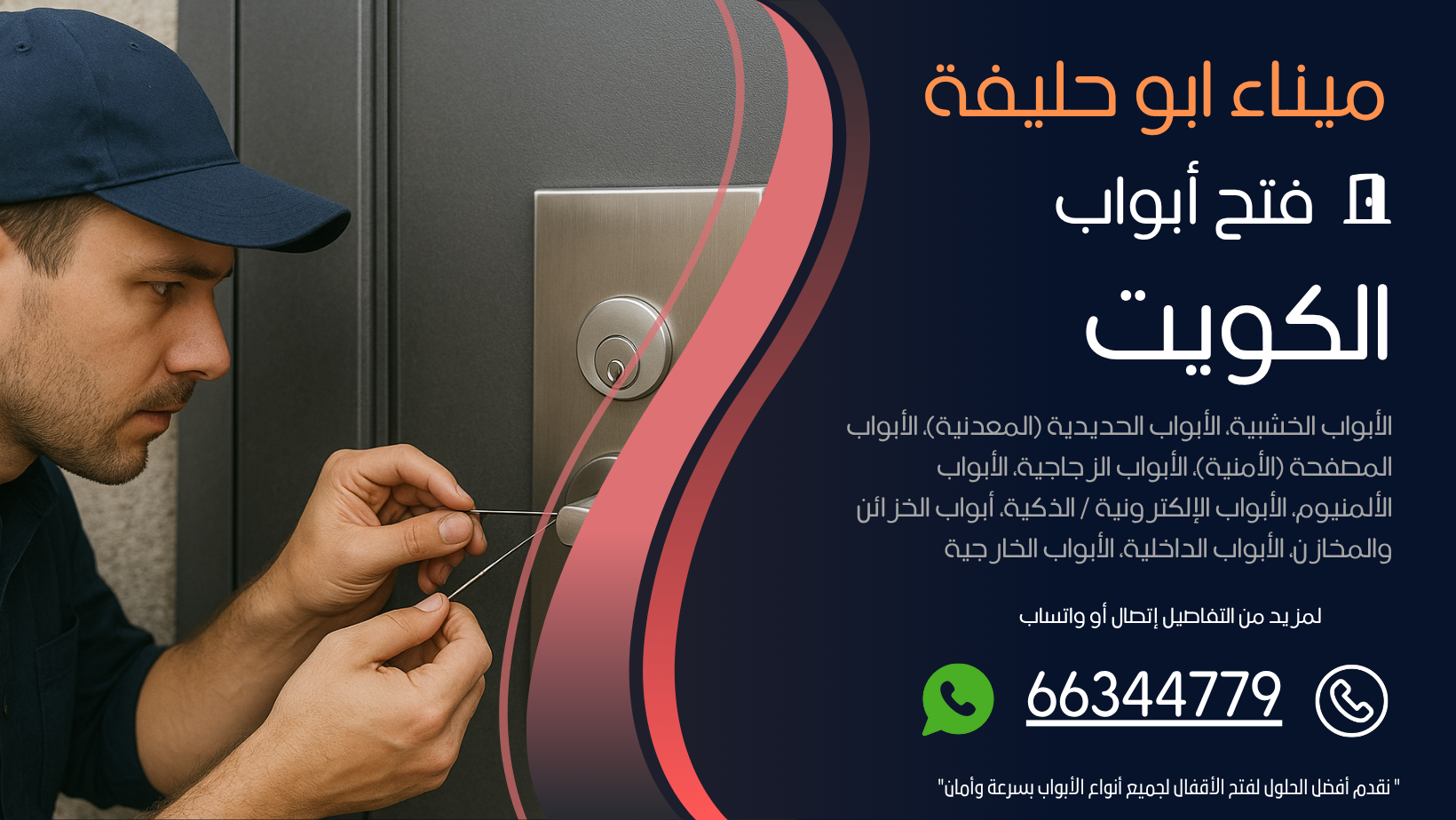 - تركيب اقفال ابواب ميناء ابو حليفة للأبواب الخشبية، الحديدية، أو الاكوردين.